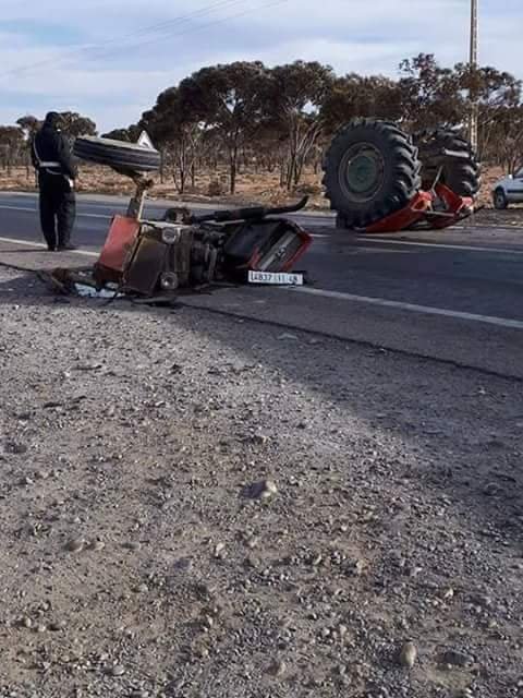 وحسب ذات المصادر ، فإن حادث الإصطدام وقع بين سيارة من نوع رونج روفر و جرار، مما أدى إلى إنقلاب الجرار و إنقسامه إلى نصفين، مخلفا إصابة سائقه بكسر على مستوى رجله اليمنى، فيما لم تسجل أي إصابات في ركاب السيارة .