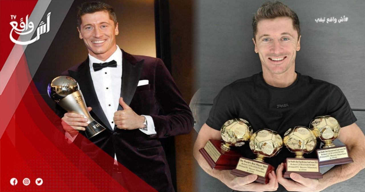 ليفاندوفسكي يشارك معجبيه صورة رفقة جوائزه الأربعة لسنة 2021