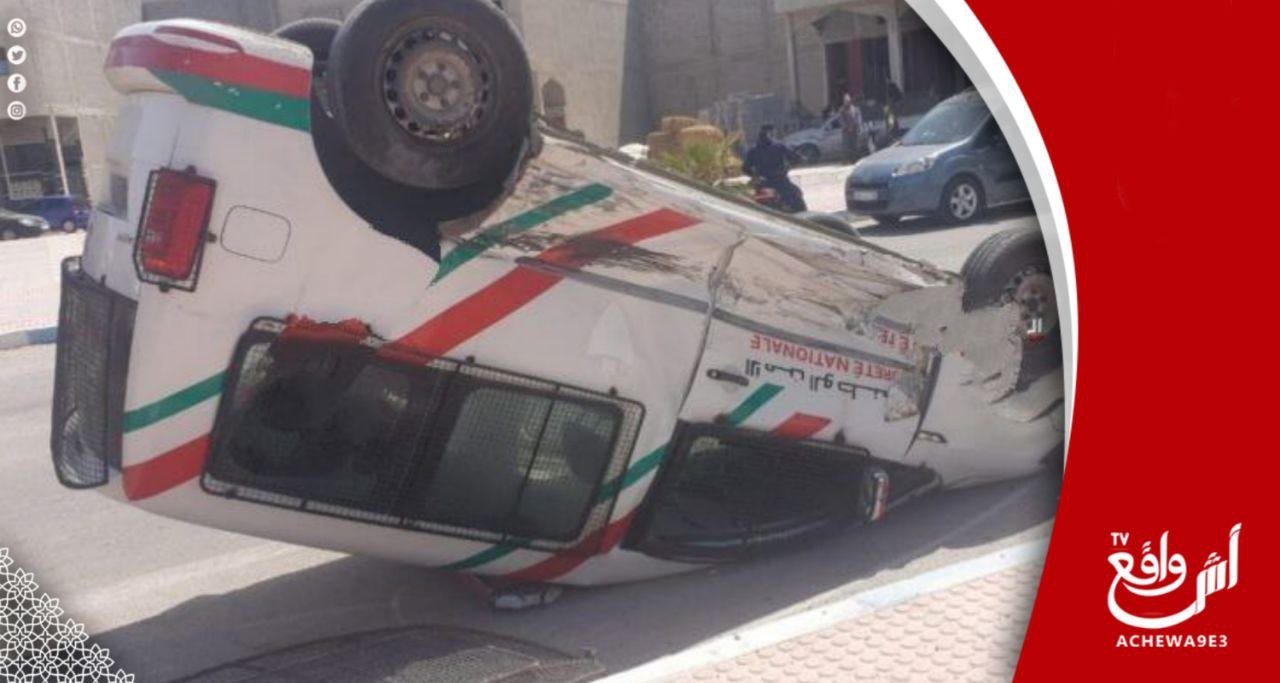 الداخلة : انقلاب سيارة تابعة للأمن الوطني بعد اصطدامها بسيارة أخرى