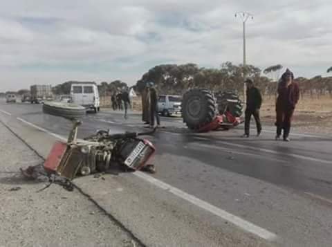 صور لحادثة سير خطيرة… دراجة نارية ثلاثية العجلات “تربورتور”و شاحنة كبيرة”رموك”